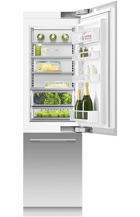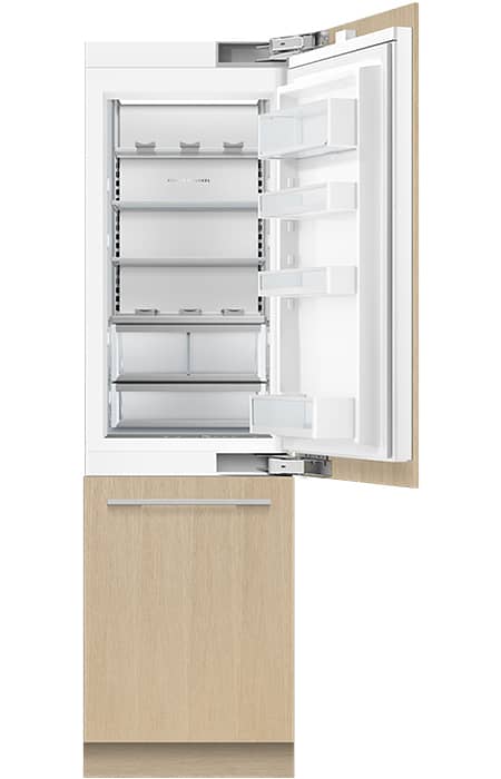 Fisher & Paykel RS2484WRU1 Series 9 24″ Panel Ready Right-Hinge Built-In Bottom Freezer Refrigerator, Ice & WaterA slim profile, perfect for compact kitchens, or pair it with other Integrated models for generous chilled and frozen storage. Features