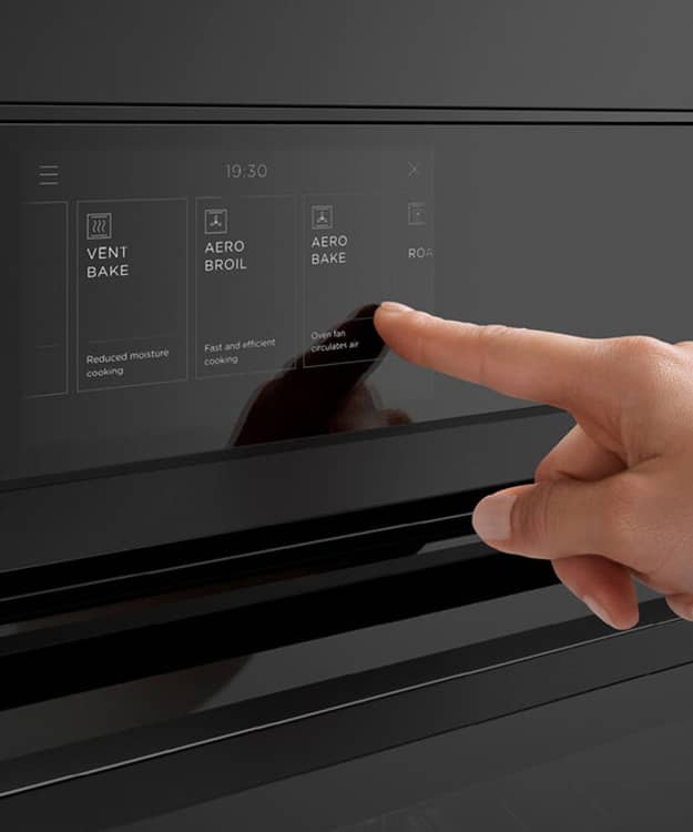 Fisher & Paykel OB30SDPTDB1 Series 9 30″ Black Built-In Single Wall Oven, 17 Function, Self-CleaningWith elegant minimal styling, advanced cook functions and touchscreen, this large built-in oven is a highlight of our collection. Features