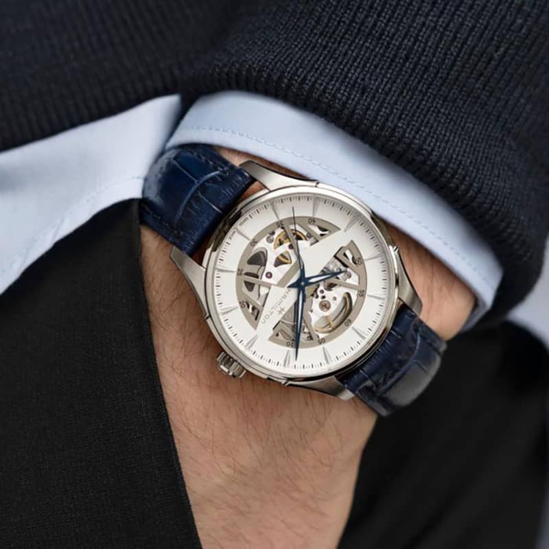 Hamilton Jazzmaster Skeleton Auto White Dial Blue Leather Watch, 40mm