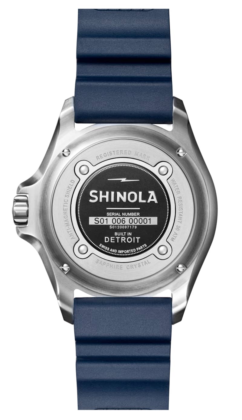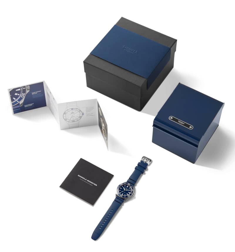 Shinola The Lake Michigan Monster Automatic Blue Dial Rubber Strap Watch, 43mm