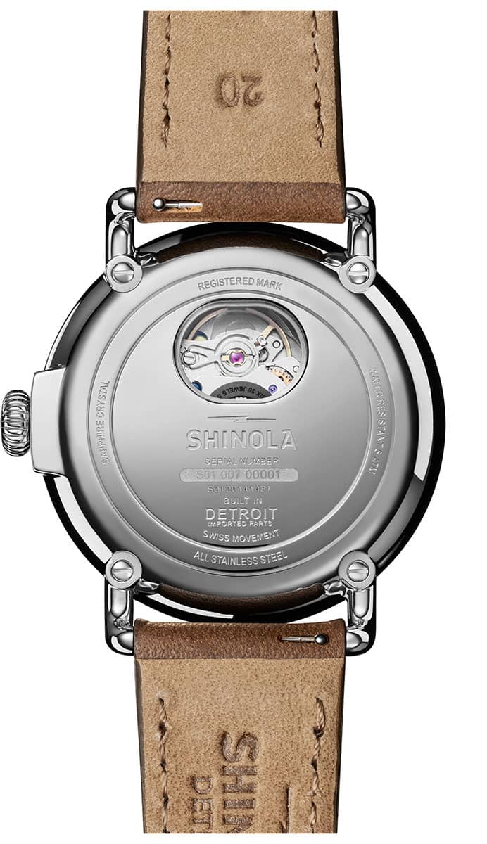 Shinola S0120141487 The Runwell Automatic 39.5mm Watch w/ Matte Black Dial & British Tan Leather StrapYou’ve been waiting, we’ve been working, and now the Runwell Automatic is finally here. Meet our flagship, now with the heart of an automatic and a refined design that was years in the making. It’s a major evolutionary moment for the timepiece that launched the Shinola brand. Recognizable but refreshed with thoughtful details, including microtracking, a richly-printed dial and an iconic caseback with a window into the inner workings of its workhorse movement, the Sellita SW200-1. Featuring a matte black vellum-textured dial and a premium leather strap in British tan, this heirloom-worthy timepiece is the epitome of the brand’s commitment to quality craftsmanship that refuses to be ignored. Features