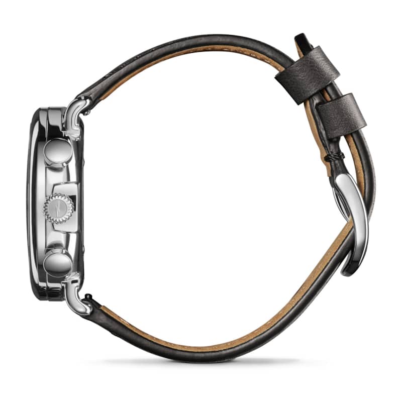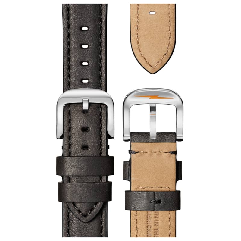 Shinola S0120141503 The Runwell Chrono 41mm Watch w/ Cloud Blue Dial Black Leather StrapSubtle, stylish and a great conversation piece, this 41mm Runwell Chrono stands out with an understated, cloud blue sandblasted dial and two darker blue chronograph sub dials, powered by the complex Argonite 5021 movement. A pop of orange adds some fun while classic details like the polished stainless steel case, coin edge detailing, doubled-domed sapphire crystal and a black leather strap make this timepiece a cool classic. Features