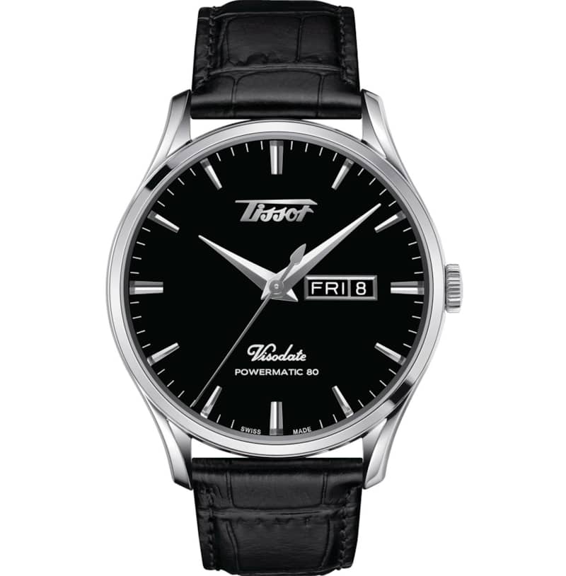 Tissot Heritage Visodate Powermatic 80 Black Dial Leather Strap Watch, 42mm