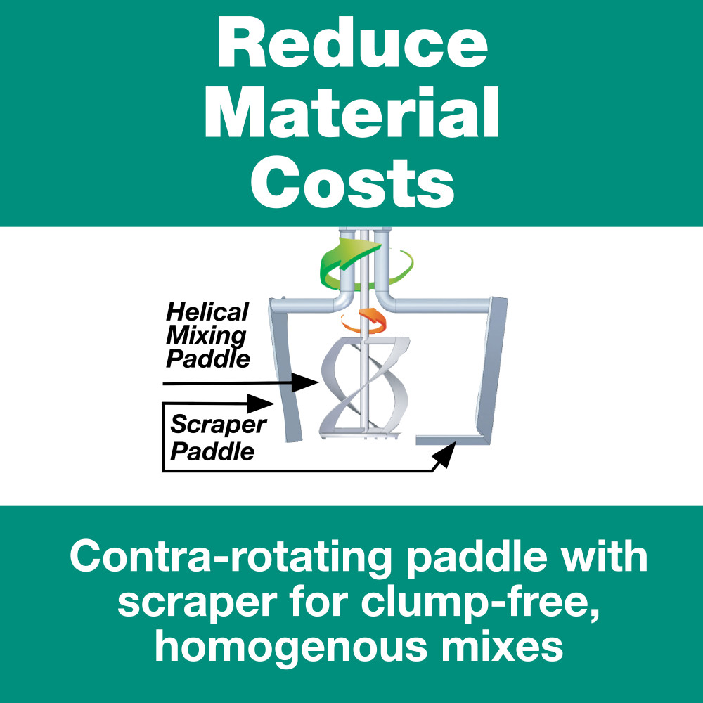 Two contra-rotating paddles thoroughly combine compounds into a homogeneous, lump-free mixture