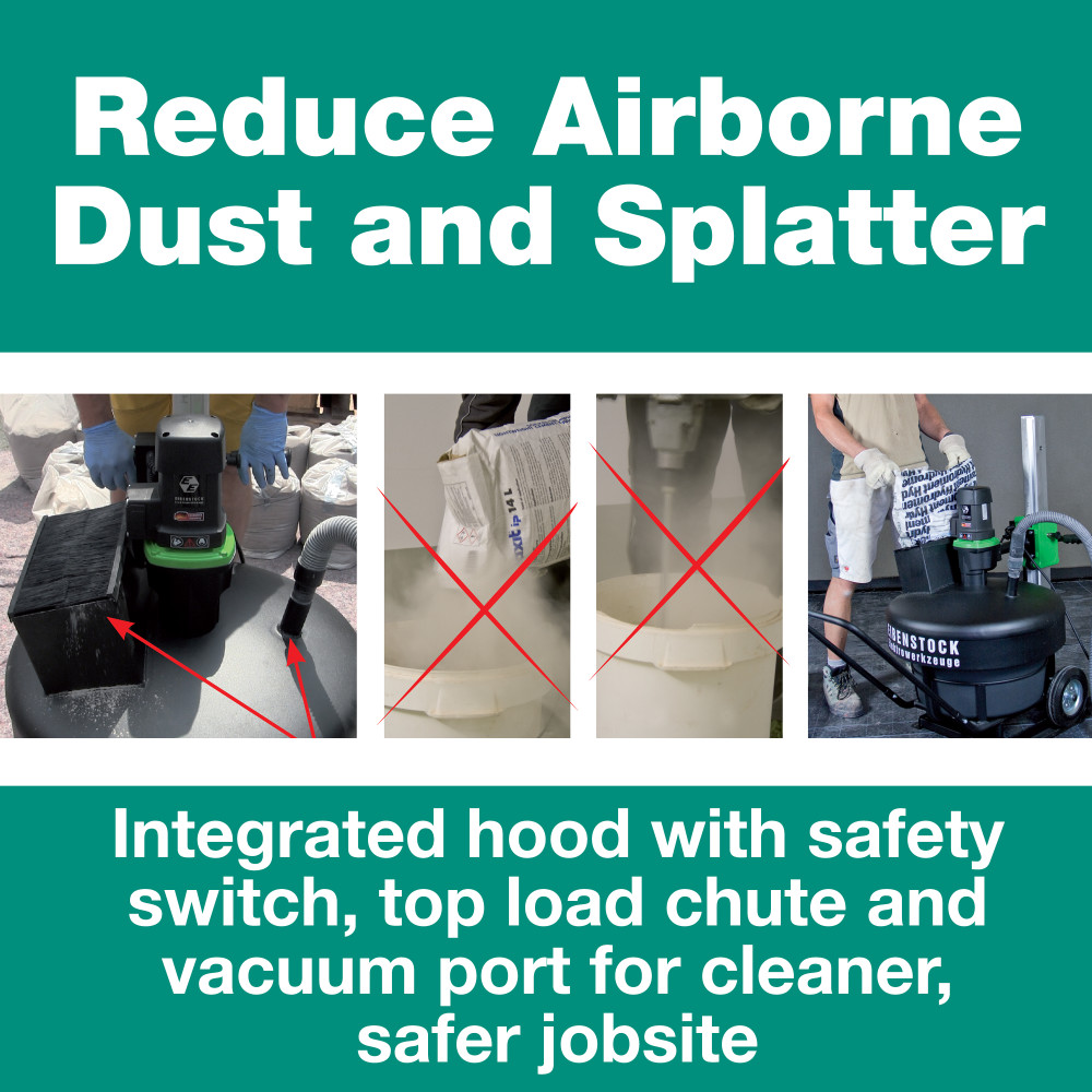 Dust extraction port collects dust while adding materials and mixing