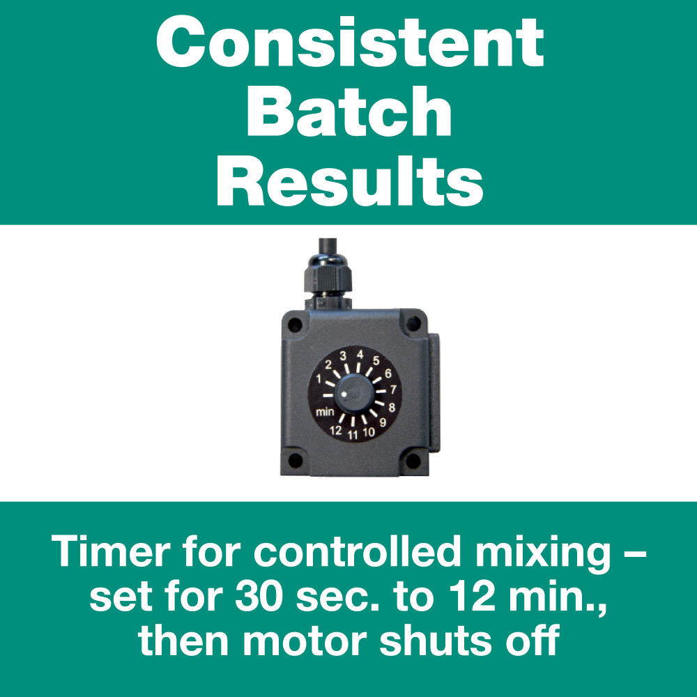 With included timer and optional second cart cut labor and production time in half – automatically mix a new batch while pouring the previous batch!