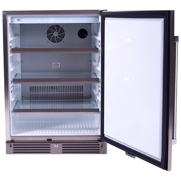 The XO 24?? Outdoor refrigerator – XOU24ORSL (Left Hinge) does double duty as a convenient location for all your favorite cold beverages and other perishables. The clear glass shelves fully extend while loaded to help you and find everything at a glance, while the durable stainless steel finish compliments your outdoor kitchen.