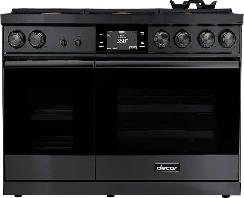 Dacor DOP48M86DLM Contemporary 48″ Graphite Stainless Steel Natural Gas Dual-Fuel Steam RangeTransform the way you cook with innovations like steam-roasting and steam-baking, speed convection, a built-in Wi-Fi-enabled LCD touchscreen, and the power of 22K BTU dual-stack sealed brass burners. Designed to inspire the imagination and make every meal an encore performance. Features Performance