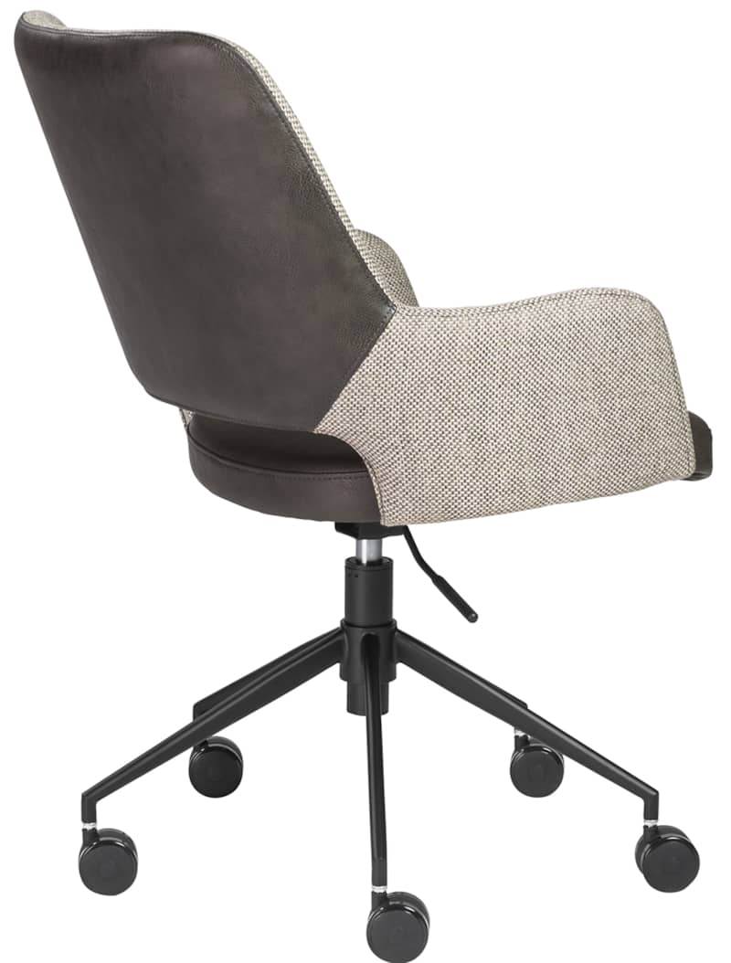 Euro Style 30481DKGRY Desi Tilt Office Chair In Light Gray and Dark Gray with Black BaseThe Desi Collection rolls in with a vintage distressed soft leatherette seat paired with durable fabric back and armrests. Matte black powder coated steel base glides on large 60 mm casters. Height adjustable with tilting mechanism. Features