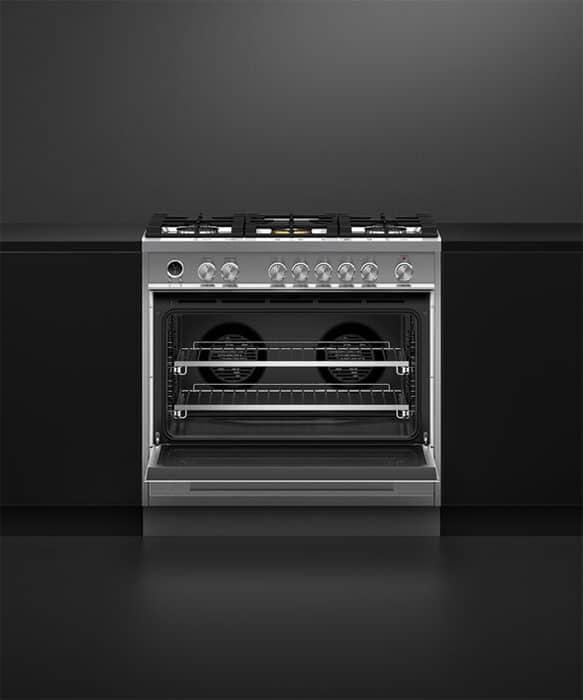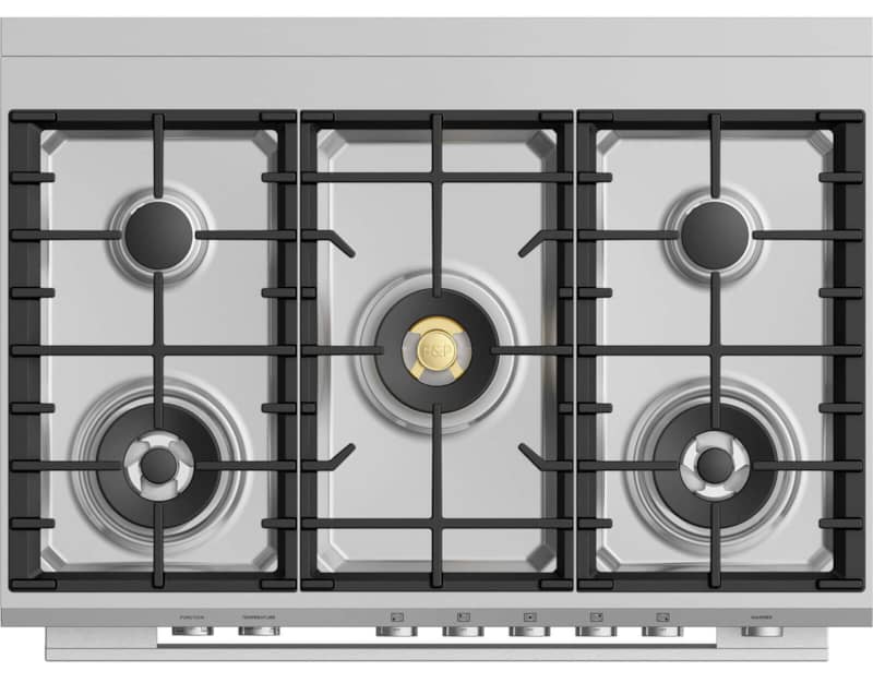 Fisher & Paykel Series 9 Contemporary 36″ Stainless Steel Freestanding Dual Fuel Range, 5 Burners & Self-Cleaning