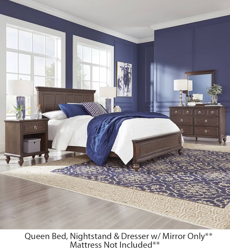 Homestyles Southport Distressed Oak Queen Bed, Nightstand And Dresser w/ Mirror